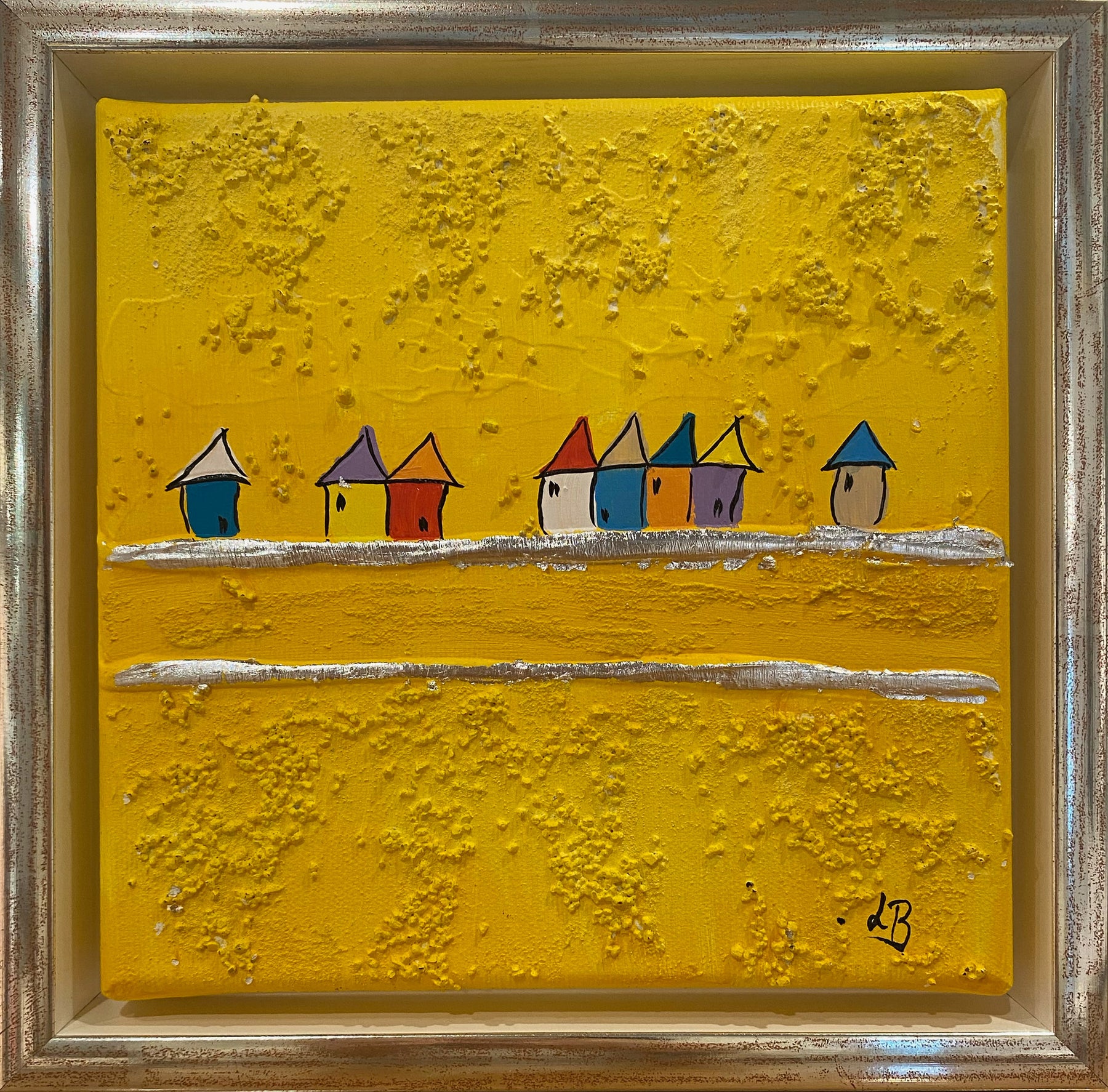 Dieses Werk zeigt farbenfrohe Häuser inmitten einer leuchtenden Berglandschaft. Wie alle Bilder von Lea Bach hat diese Acrylmalerei viel Struktur, durch die verwendete Spachteltechnik erweckt es den Eindruck von Tiefe und zieht den Betrachter in seinen Bann.