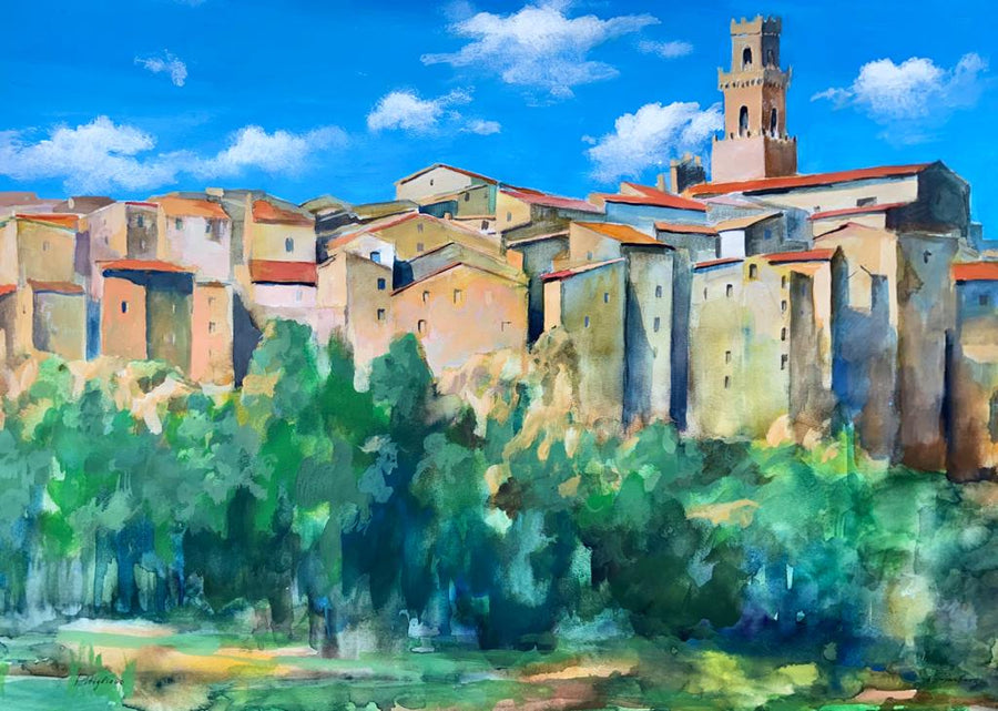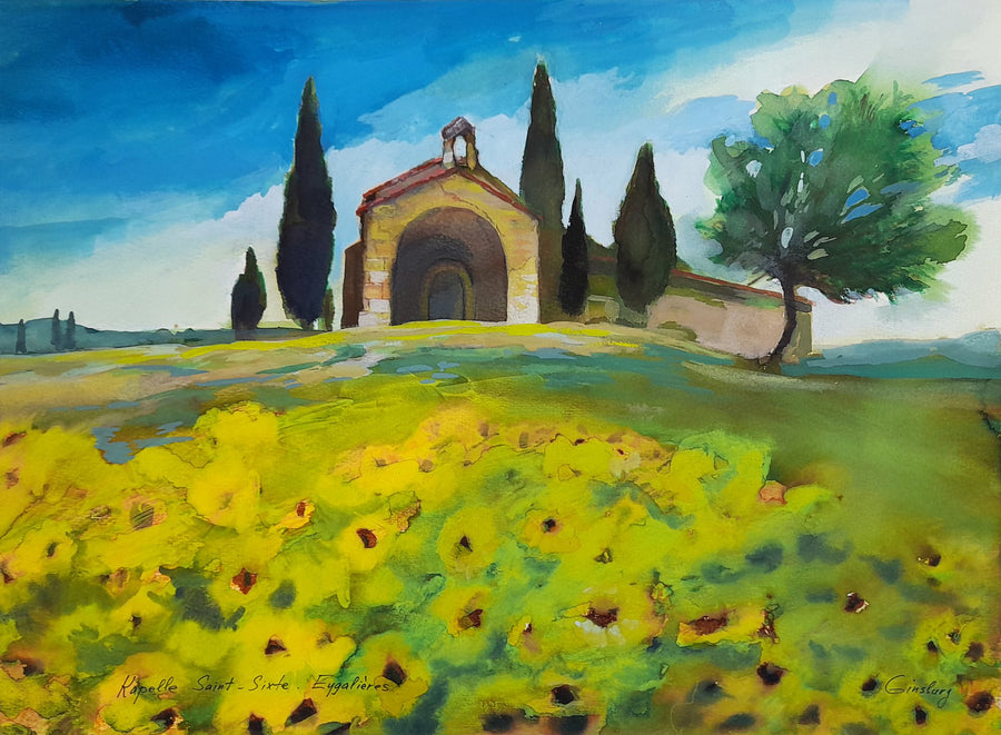 Die gemalten Landschaften werden als Topographie verstanden, dessen Aufbau besonderen Regeln folgt. In ländlicher Idylle, zwischen sonnendurchglühenden Hügeln, schattigen Landschaften und leeren Dörfern, fängt Ginsburg Momente ein, die ausdrucksstark sind.