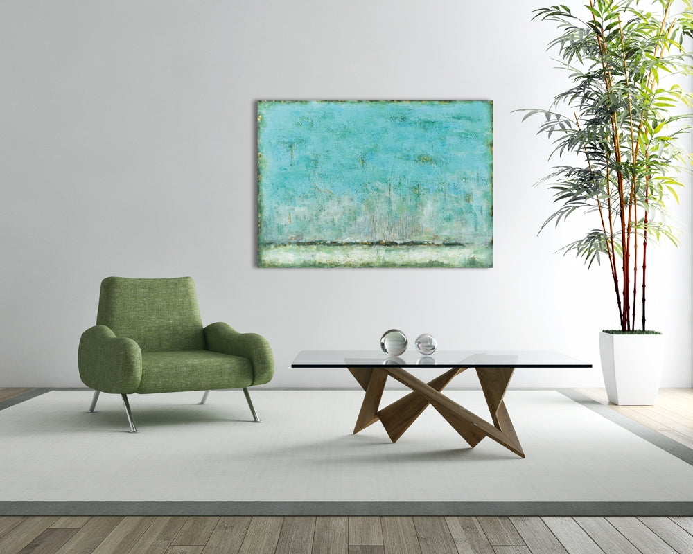 Harmonisches abstraktes Farbenspiel lässt Raum für freie Interpretationen. Aufwendige Craquelé Struktur und Akzente aus schimmernder Metallfolie machen unser handgemaltes Acryl Gemälde zum Kunstobjekt. Im passenden silberfarbigen Schattenfugenrahmen eine stimmungsvolle Dekoration für Heim und Büro.