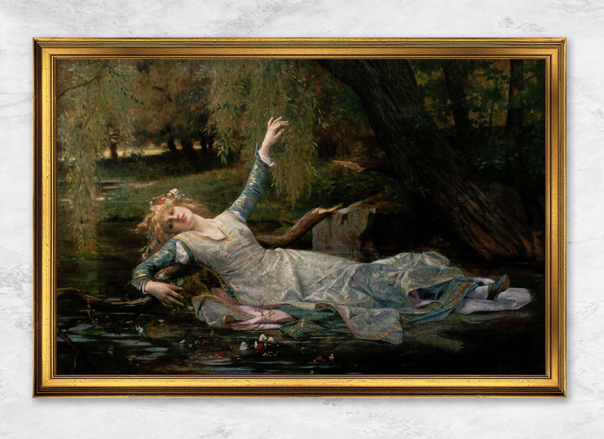 Alexandre Cabanels Gemälde "Ophelia" aus dem Jahr 1883 zeigt eine dramatische Darstellung der literarischen Figur Ophelia aus Shakespeares "Hamlet". Das Bild zeigt Ophelia im Wasser, während sie in einem verzweifelten Zustand schwimmt, umgeben von Blumen und Schilf. Cabanel betont die romantische Tragik der Szene durch die Wahl von Blumen, die in Shakespeares Werk mit Ophelias tragischem Schicksal in Verbindung stehen. Die subtile Farbpalette und die detaillierte Darstellung spiegeln Cabanels meisterhafte technische Fertigkeiten wider. "Ophelia" ist ein eindrucksvolles Beispiel für Cabanels Fähigkeit, literarische Themen in künstlerische Meisterwerke umzuwandeln und Gefühle durch malerische Darstellungen zu vermitteln.