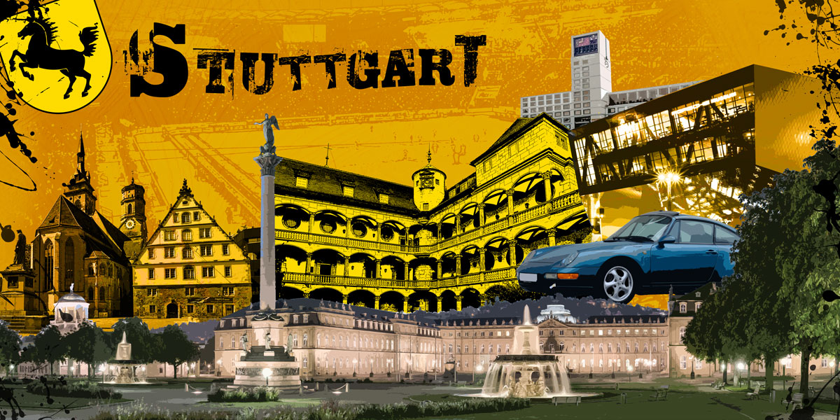 Gelbes Stuttgart Collage ist gewöhnlich in 5 - 14 Werktagen Versandbereit