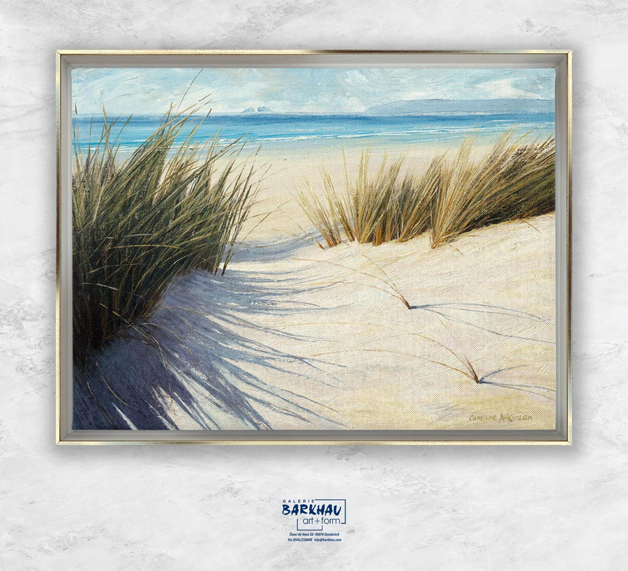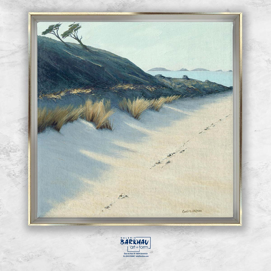Die Faszination für die Dünen entlang der englischen Küste spiegelt sich in ihren bevorzugten Motiven wider. In dieser Umgebung entdeckt sie das klare Licht, das ihren Kunstwerken eine einzigartige Qualität verleiht. Durch ihr sensibles Gespür für die Feinheiten der Farbpalette vermittelt die Künstlerin das Gefühl, dass sie mit ihren Werken über die Grenzen des rein Sichtbaren hinausgeht. Sie führt den Betrachter behutsam in die Essenz der Landschaft, ermöglicht einen Blick auf deren Seele.