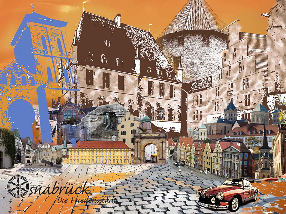 Osnabrück - Die Friedensstadt Karmann Ghia (OSB-31) I Giclee auf Holzkeilrahmen ist gewöhnlich in 5 - 14 Werktagen Versandbereit