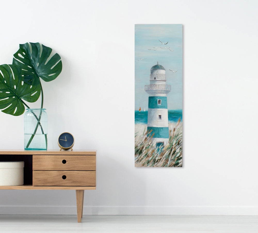 Holen Sie sich das Küsten-Flair nach Hause! Meint man doch beim Betrachten eine leichte Brise zu spüren, das Meer zu riechen und die hellen Schreie der Möwen zu hören. Außergewöhnliches Giclée kunstvoll von Hand veredelt in zarten maritimen Farben.
