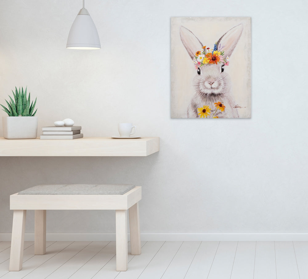 Sommer, Sonne, Schnurrhaare und Riesen-Öhrchen! Wen bezaubert unser niedlicher Hase wohl nicht? Detailverliebtes Giclée liebevoll von Hand kunstfertig akzentuiert. Ein charmanter Blickfang für Ihr Heim oder das Kinderzimmer.