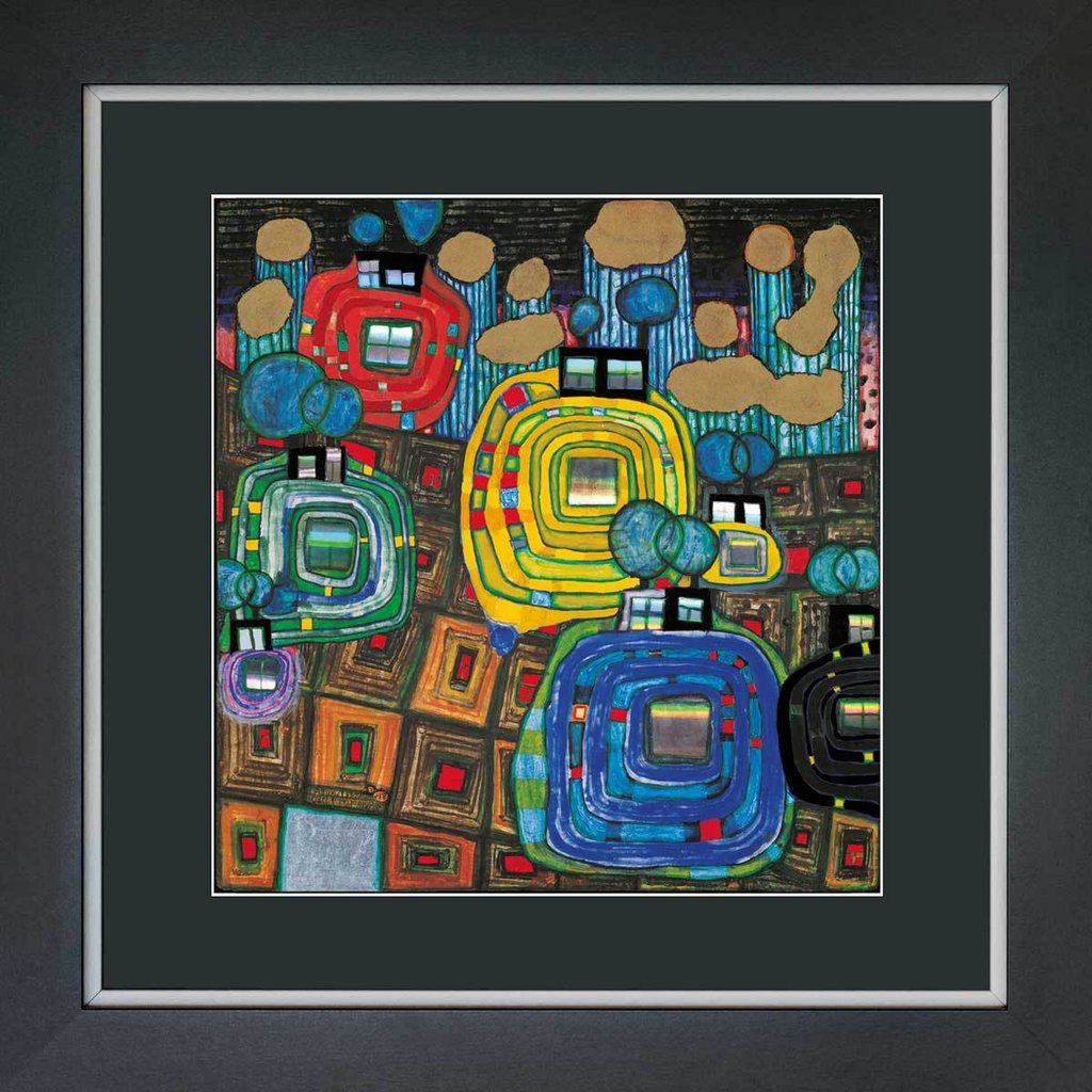 "PAVILIONS AND BUNGALOWS" | Friedensreich Hundertwasser mit Rahmen ist gewöhnlich in 5 - 14 Werktagen Versandbereit