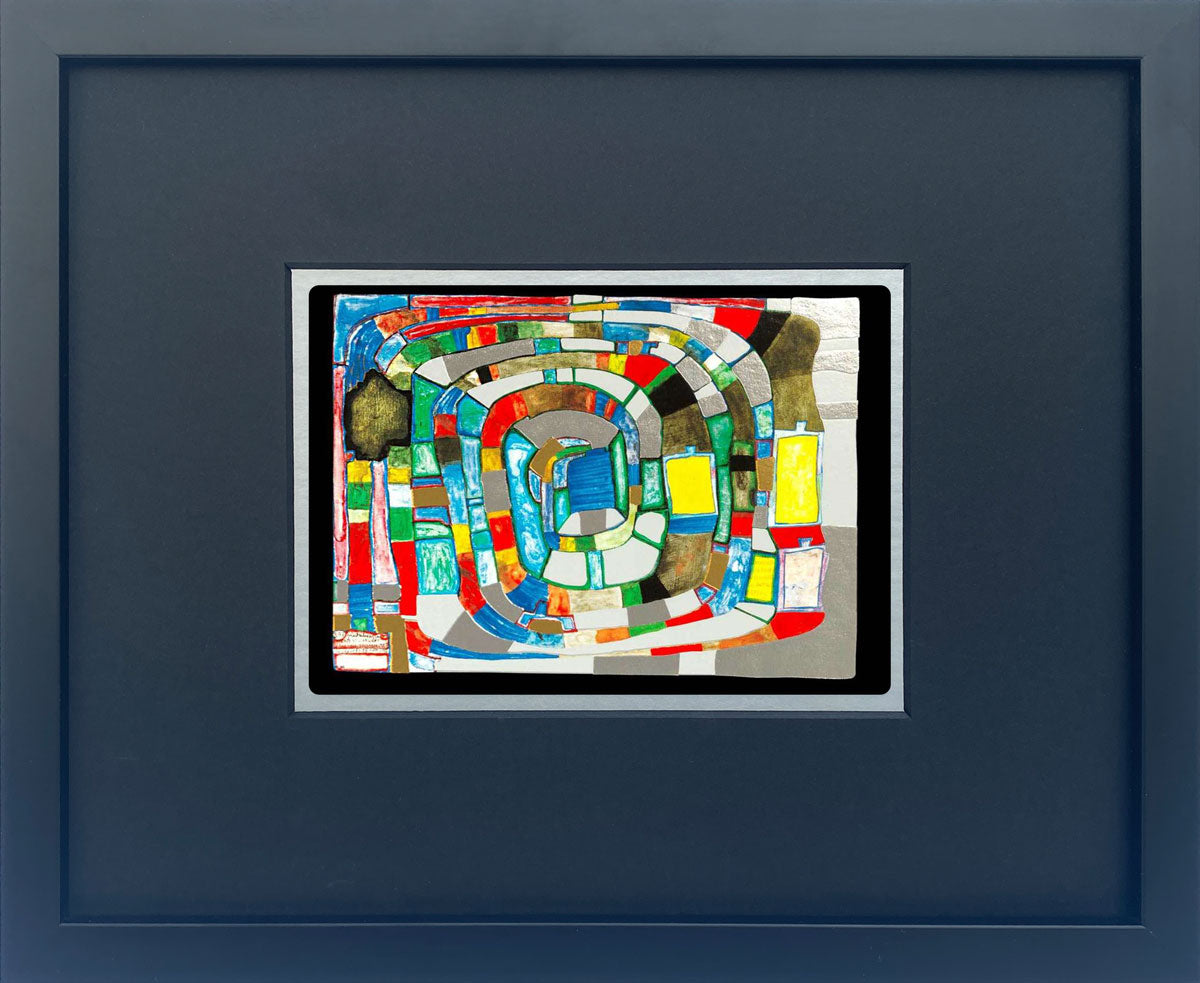"Silver spiral" | Friedensreich Hundertwasser Miniprint mit Rahmen ist gewöhnlich in 1 - 5 Werktagen Versandbereit