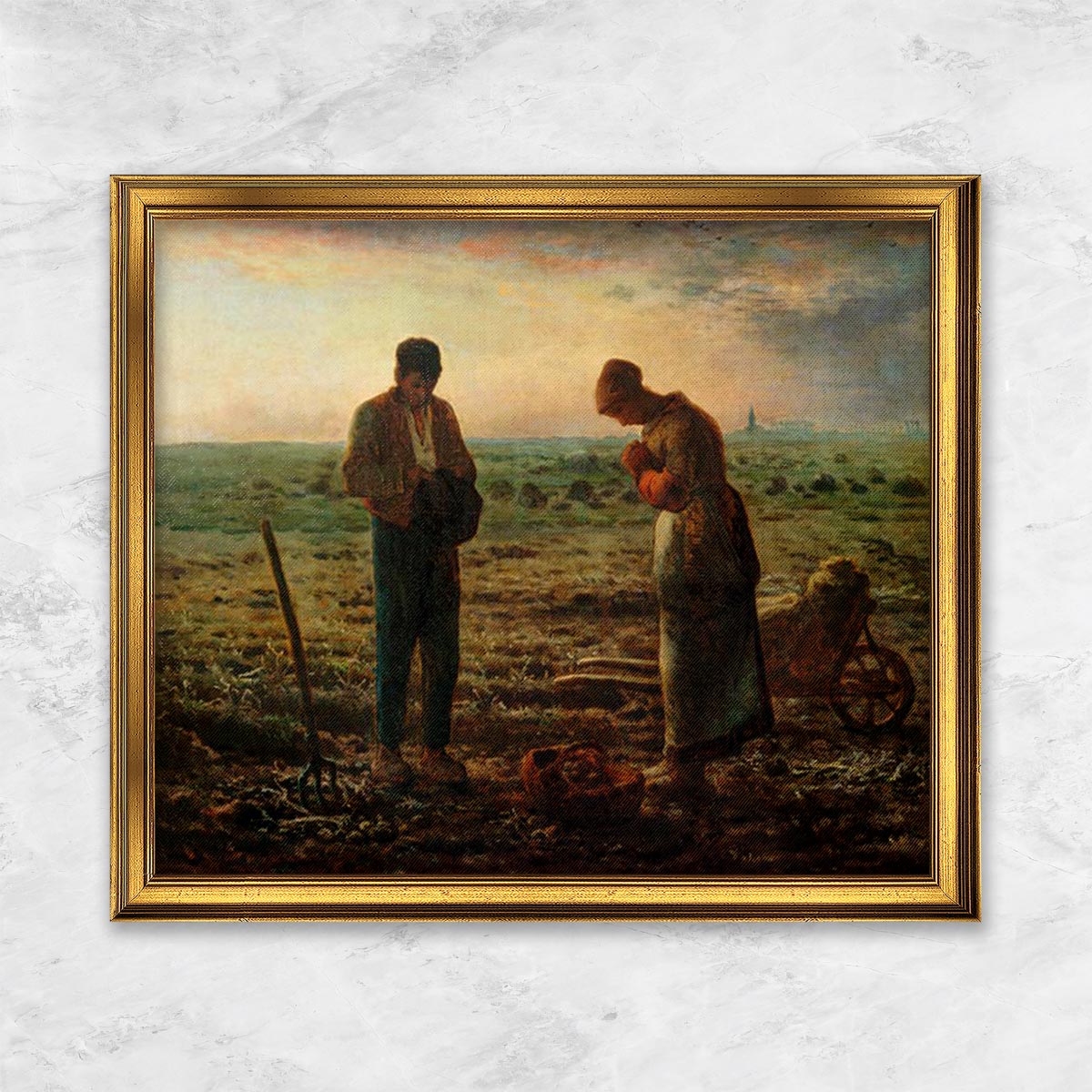 "Abendgebet" von Jean-François Millet zeigt eine Gruppe bäuerlicher Menschen, die sich nach einem Tag harter Arbeit zum Gebet versammeln. Die Szene strahlt eine bescheidene und spirituelle Atmosphäre aus, während die Figuren in einer einfachen ländlichen Umgebung zu sehen sind. Millet, bekannt für seine realistische Darstellung des bäuerlichen Lebens, betont hier die tiefe Religiosität und den Glauben der ländlichen Bevölkerung. Die Komposition vermittelt Ruhe und Gemeinschaft, wobei die Figuren inmitten der Natur inbrünstig beten. "Abendgebet" reflektiert Millets Interesse an der Verbindung zwischen spirituellem Leben und der harten Realität des ländlichen Daseins im 19. Jahrhundert.