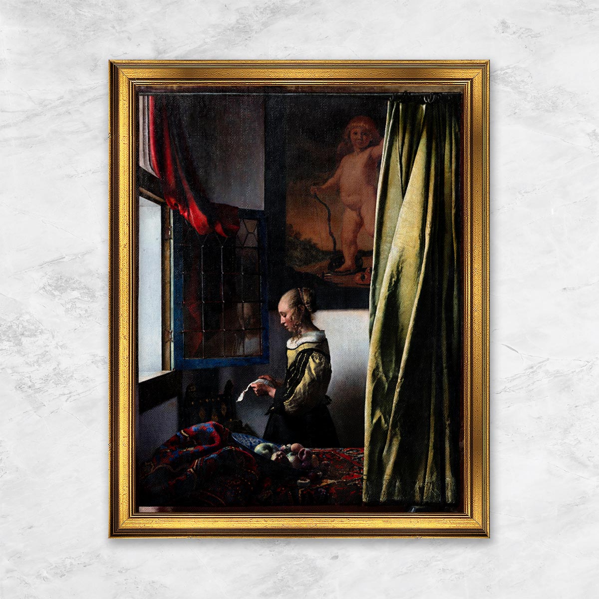 "Brieflesendes Mädchen am offenen Fenster (Nach der Restaurierung)" | Johannes Vermeer ist gewöhnlich in 14 - 25 Werktagen Versandbereit