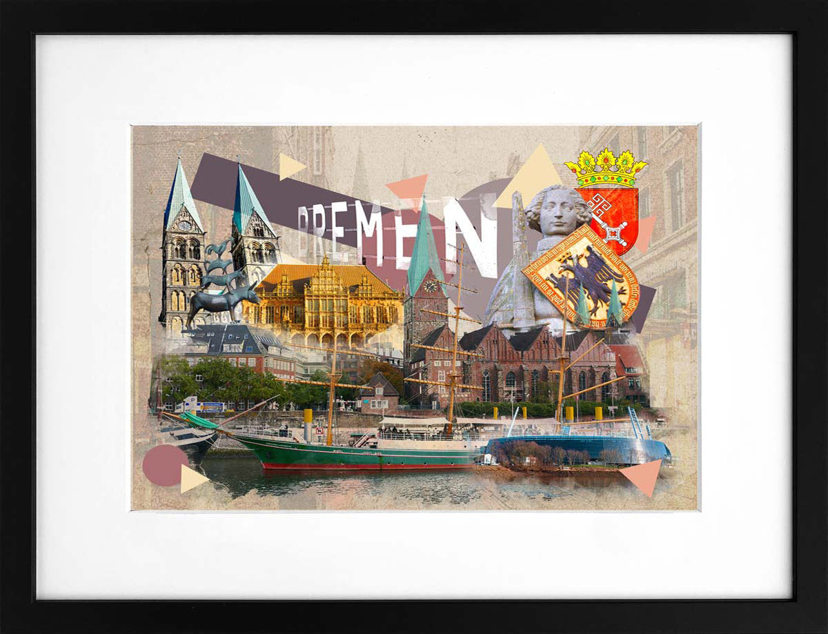 Aquarell Bremen | Stadtcollagen Miniprints ist gewöhnlich in 1 - 5 Werktagen Versandbereit