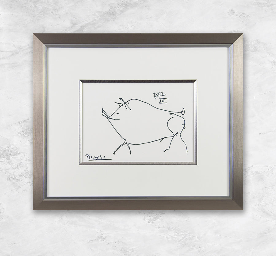 Pablo Picasso war ein spanischer Maler und Bildhauer des 20. Jahrhunderts, der zu den einflussreichsten Künstlern der Moderne zählt. Er wurde am 25. Oktober 1881 in Málaga, Spanien, geboren und starb am 8. April 1973 in Mougins, Frankreich. Picasso war einer der Mitbegründer des Kubismus, einer avantgardistischen Kunstbewegung, die die traditionelle Perspektive in der Malerei herausforderte. Sein Schaffen erstreckte sich über verschiedene Stile und Techniken, von der Blauen und Rosa Periode bis zur abstrakten Kunst. Picasso's künstlerisches Erbe umfasst Gemälde, Skulpturen, Keramiken und Grafiken, und sein Einfluss auf die Kunstgeschichte ist bis heute spürbar.