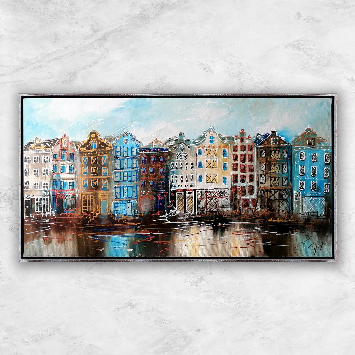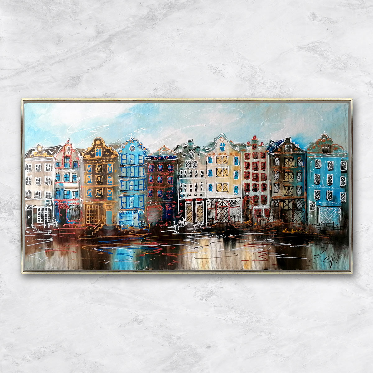 "Blaue Häuser am Flussufer" | Van Houten ist gewöhnlich in 14 - 25 Werktagen Versandbereit