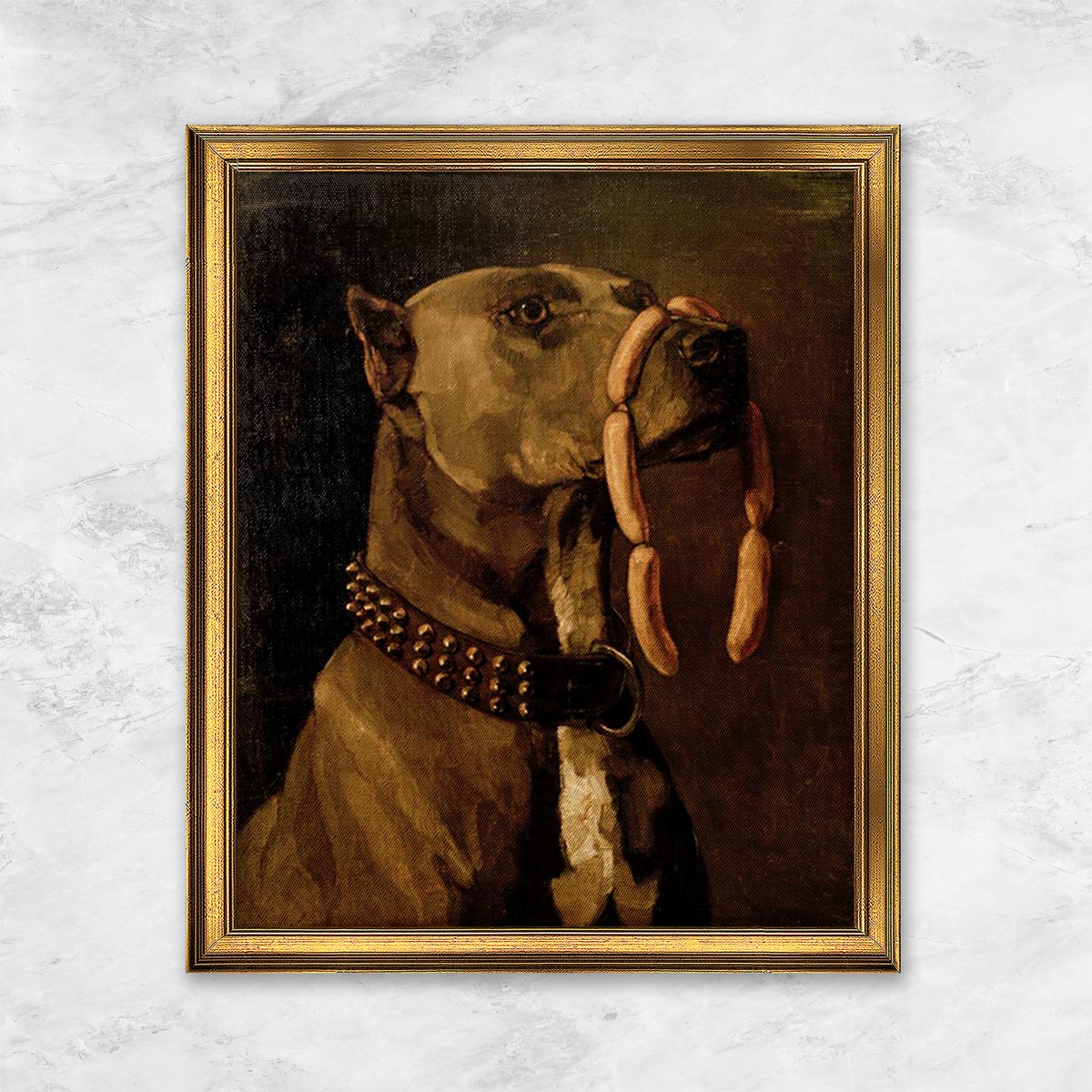 "Dogge mit Würsten (Ave Caesar morituri te salutant)" | Wilhelm Trübner ist gewöhnlich in 14-25 Werktage (Ölgemälde 40-45 Werktage)n Versandbereit