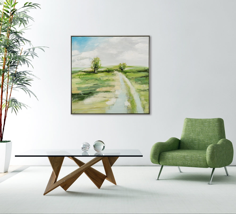 Dieses gerahmte moderne und exklusive Leinwandbild ist ein Blickfang für jeden Wohnraum, jedes Büro und jede Lounge. Die hochwertige Leinwand ist auf einen Echtholzrahmen gespannt. Das Bild scheint im eleganten Schattenfugenrahmen zu schweben. Das Gemälde wird von gut ausgebildeten Künstlern in brillanten, hochwertigen Farben von Hand gemalt.